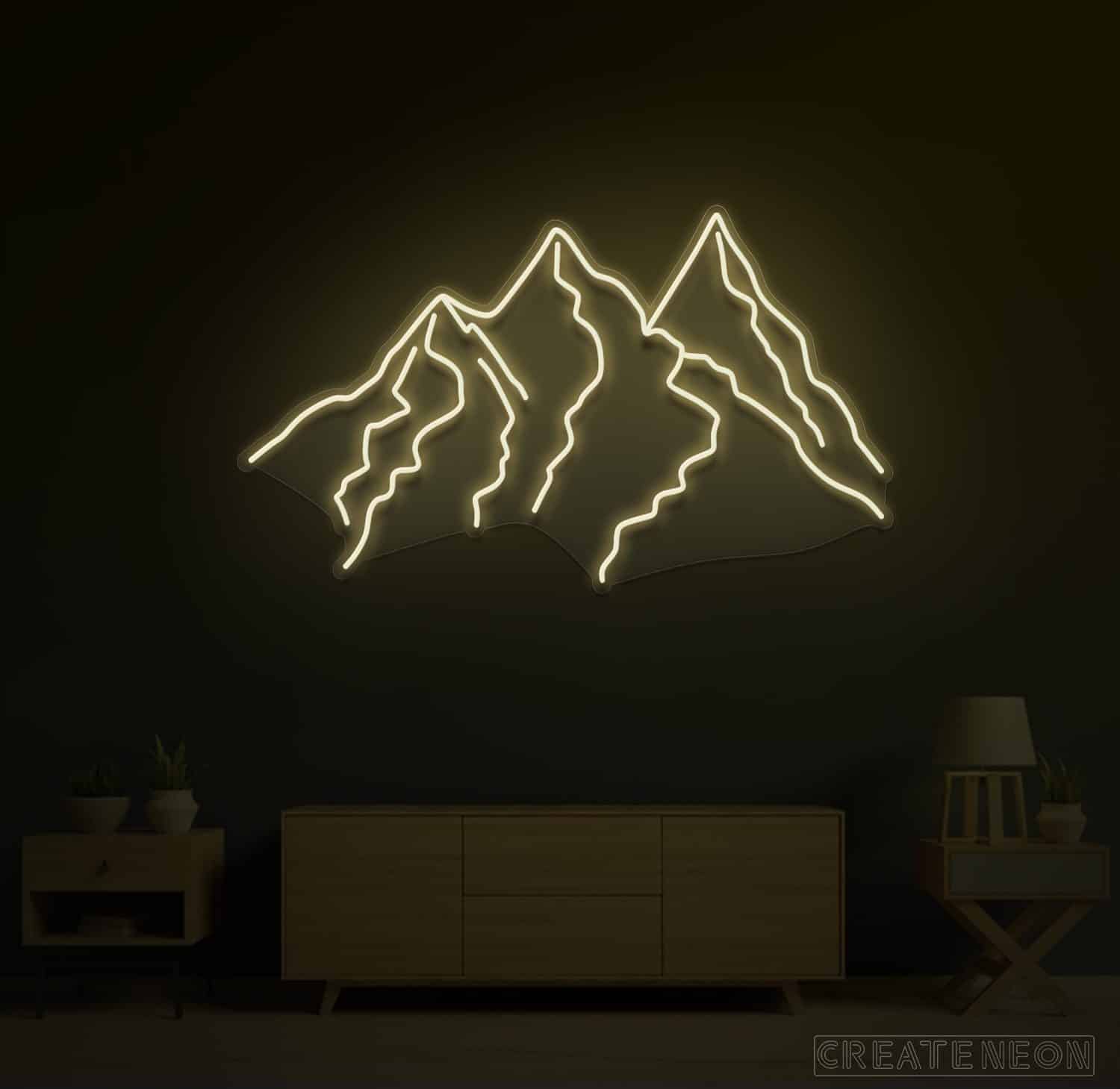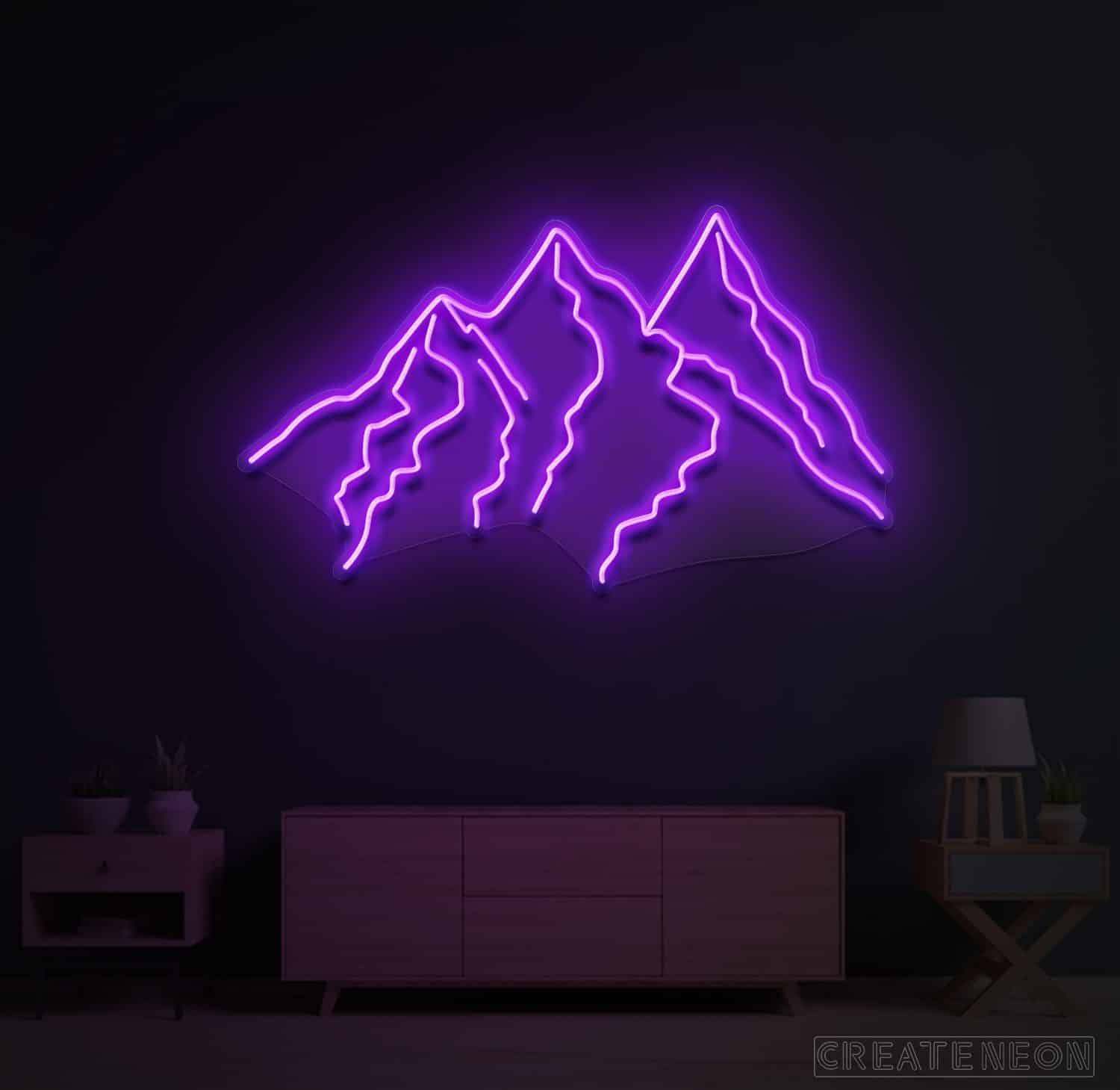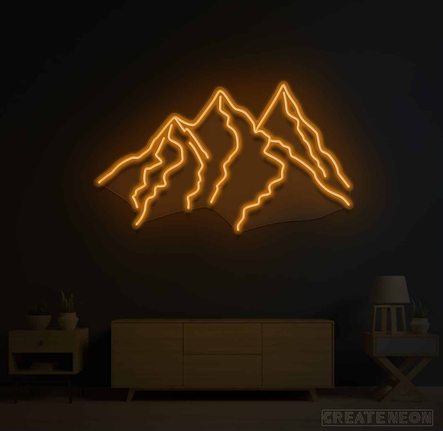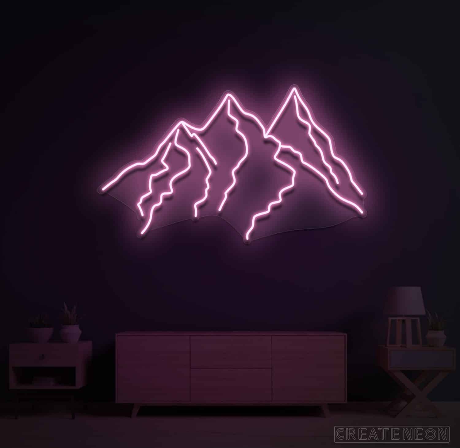 Nearly all want to spend some peaceful moments to enhance our sense of wellbeing or boost up our energy. If you have an aesthetic sense, then it becomes your desire to explore nature, landscapes, or live in the mountains under such a large and quiet sky with having a cool breeze, mesmerizing views, and a much more eye-catching field of vision. Put up something around you to re-connect with nature. Here you are, a vivid piece of art "Mountains" neon sign for a bedroom, dining room, or living room décor to refresh your mind and soul and receive a great appreciation from the visitors.