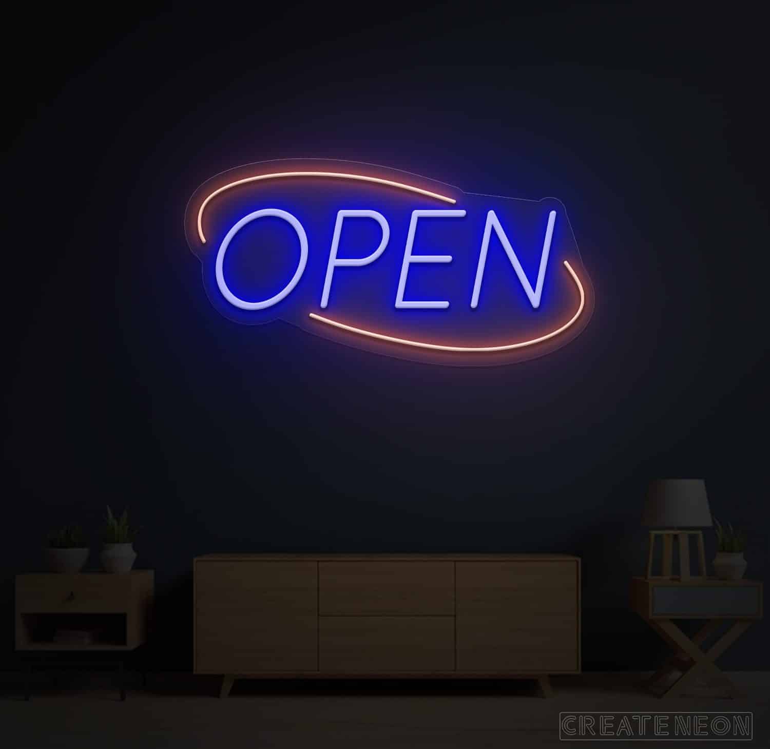 Open Blue Red Neon Sign
