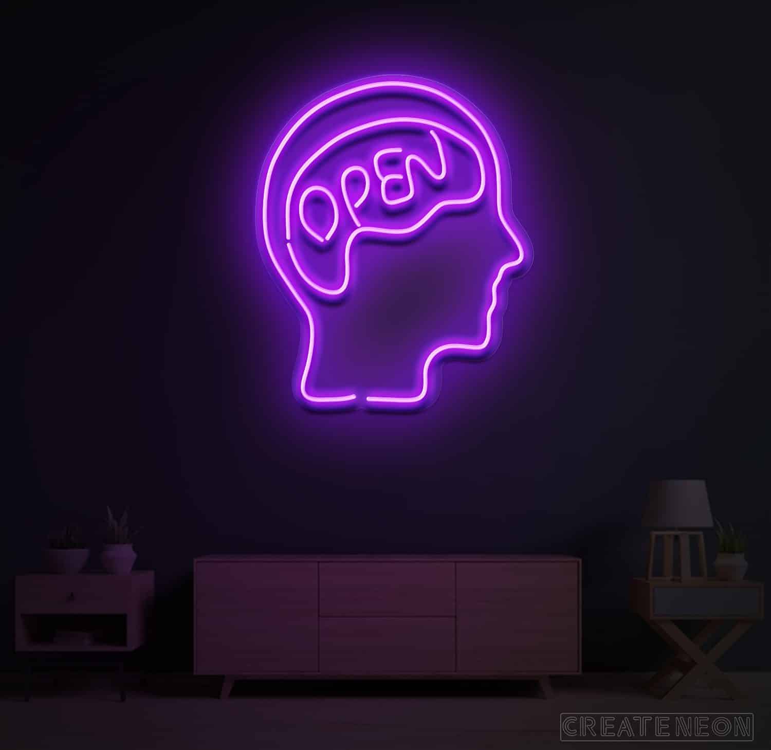Open Mind Brain Neon Sign