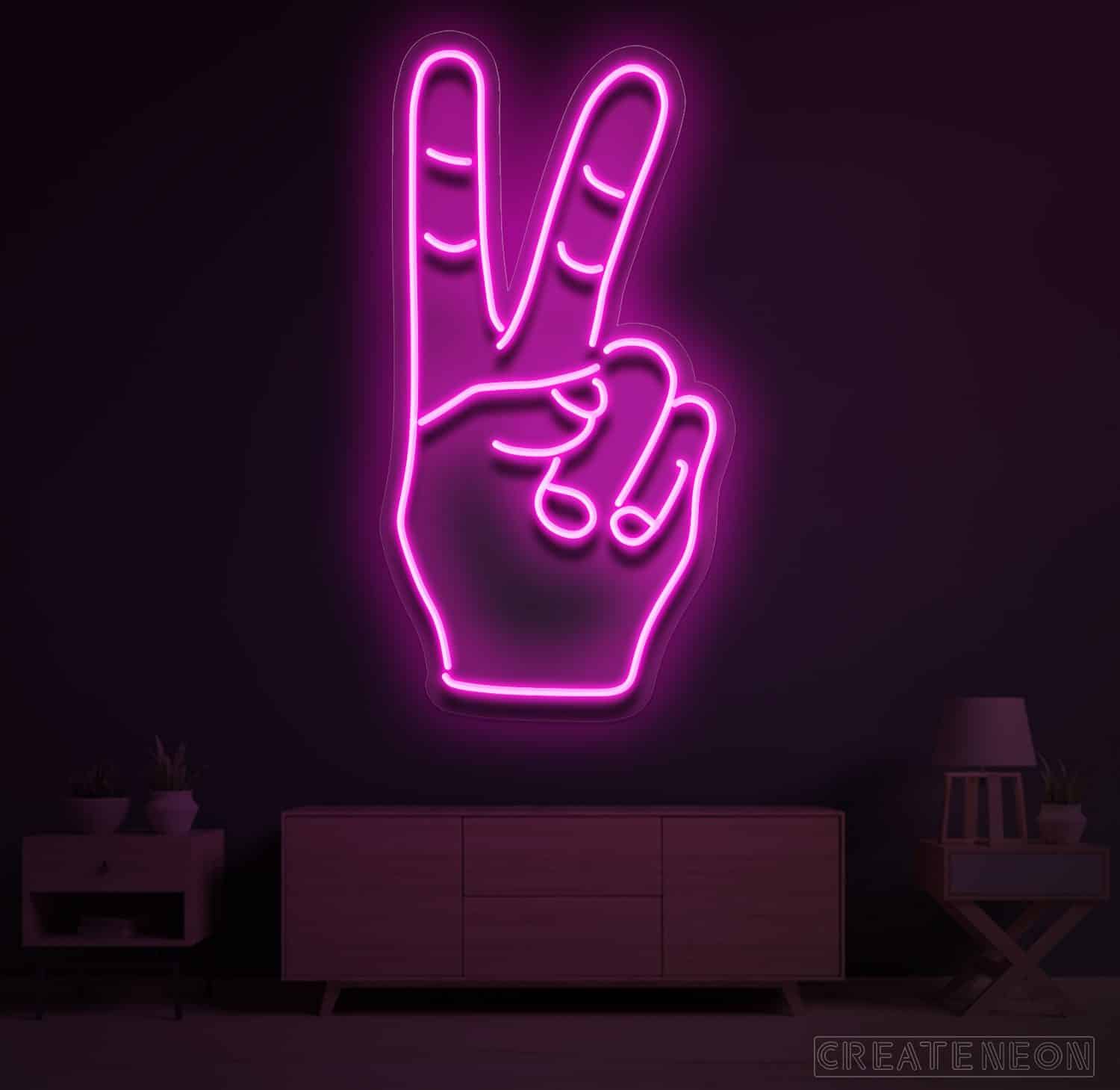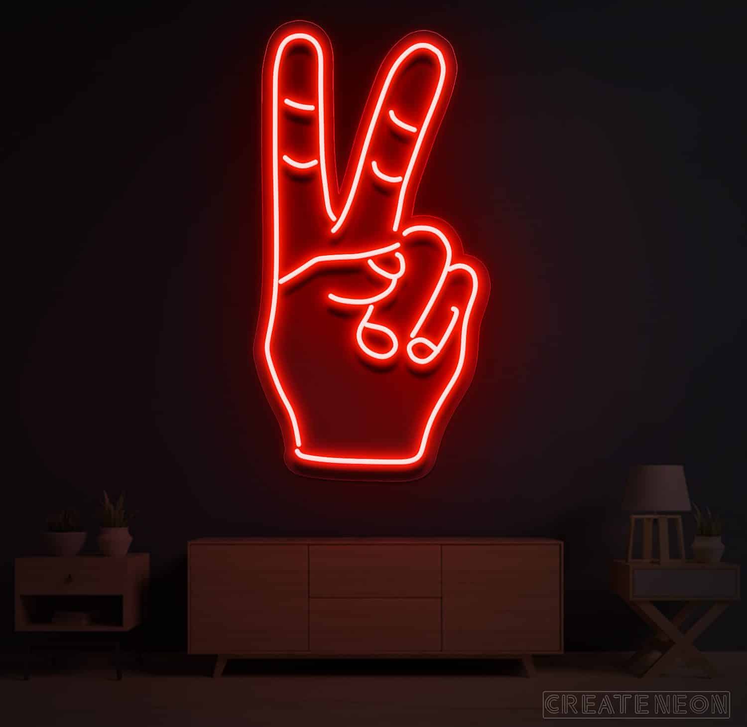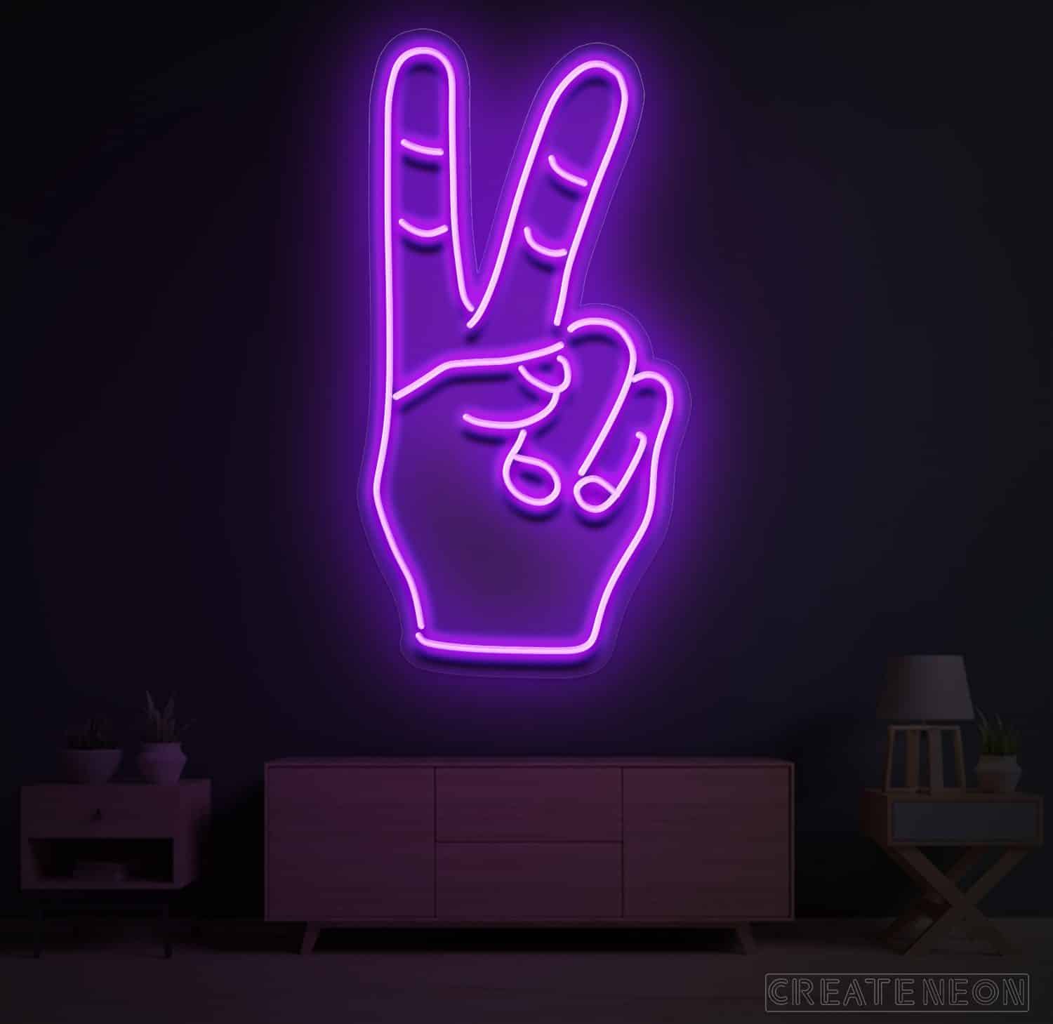 Neon LED Peace Hand Symbol is that kingdom of thoughts that can result in self-satisfaction. No one has the strength to carry your peace other than yourself. You are the best philosopher with your thoughts. When you create peace and harmony, the outcome might be a balanced mind, ultimate health, and happy life.