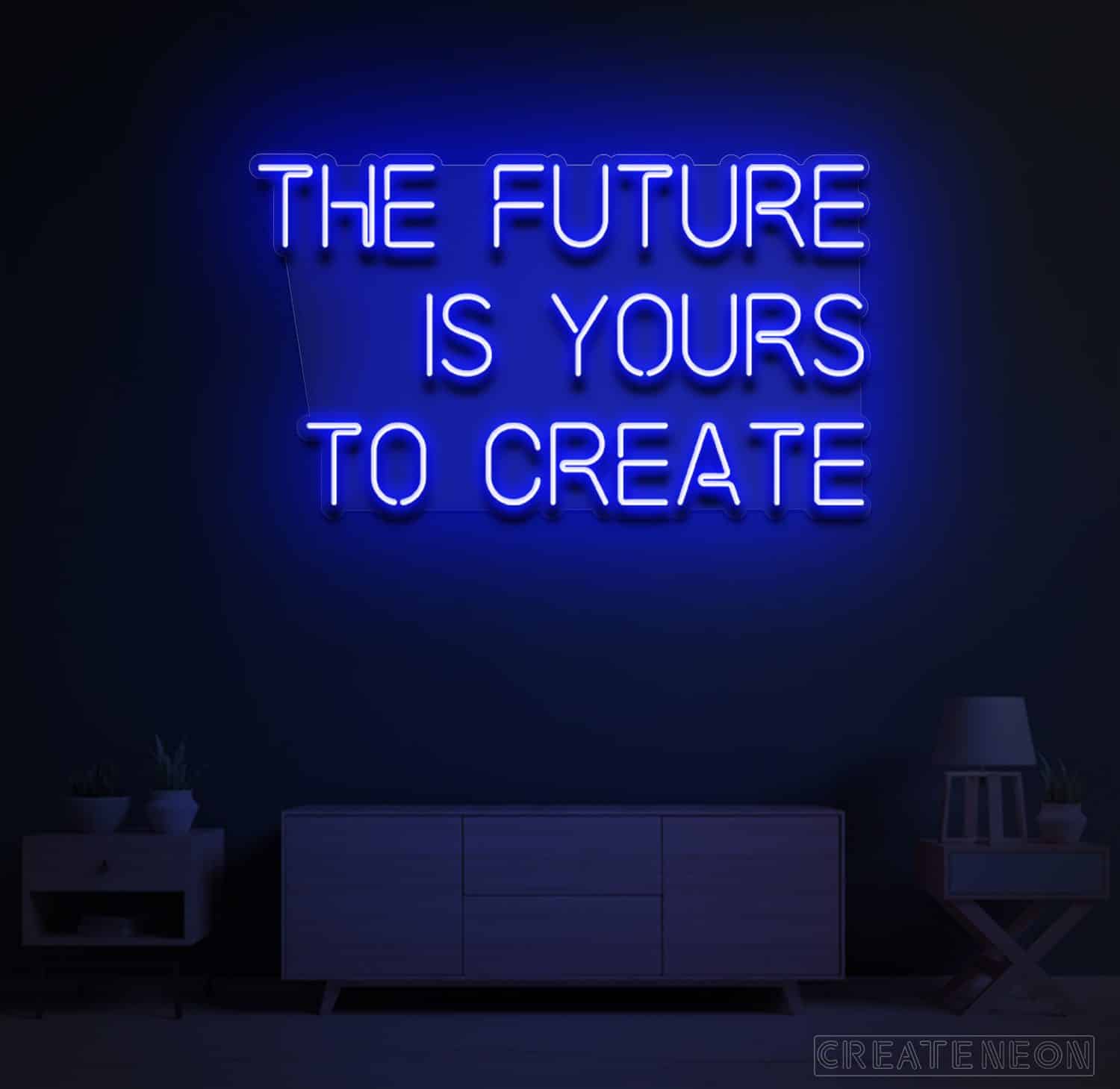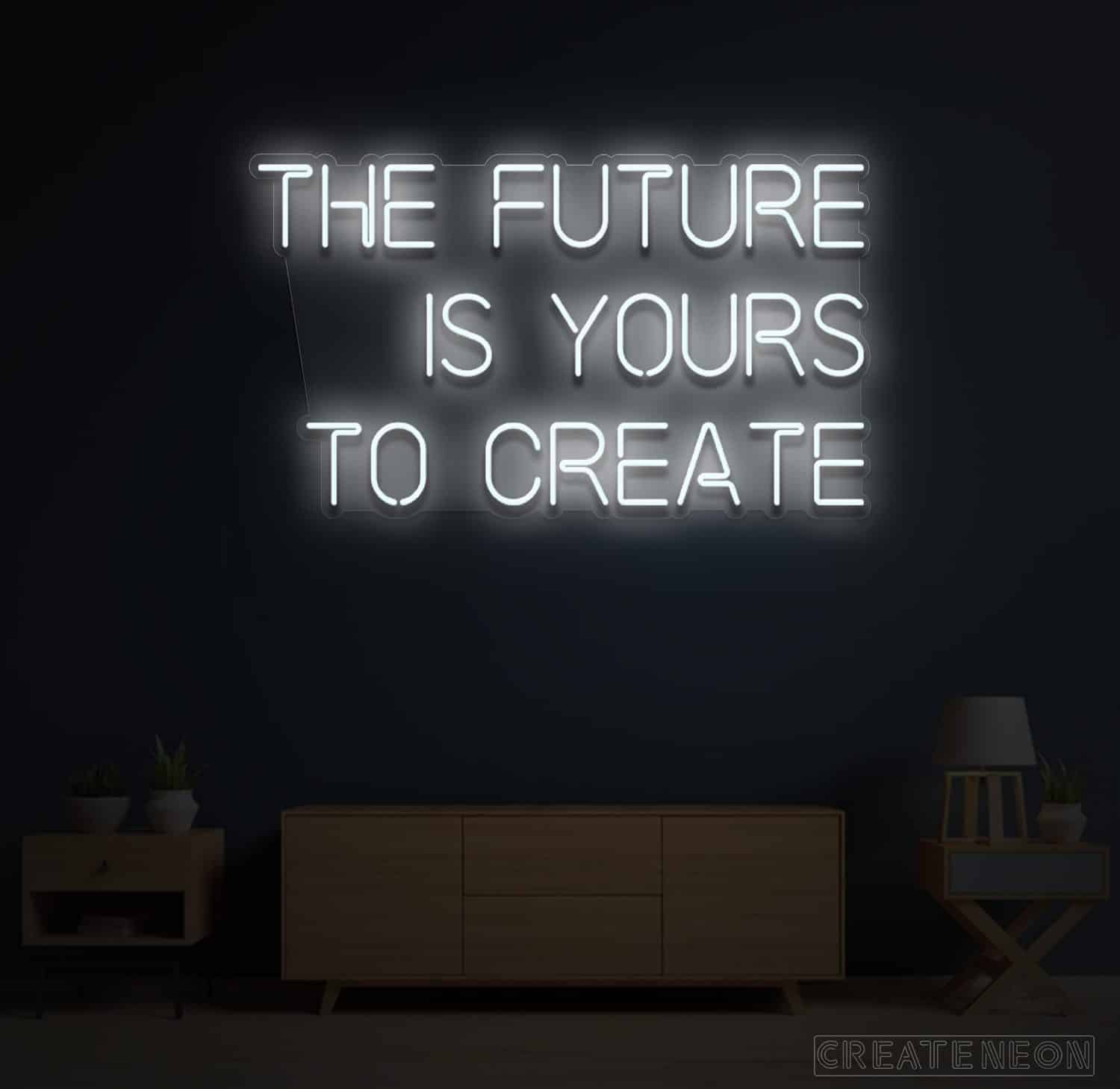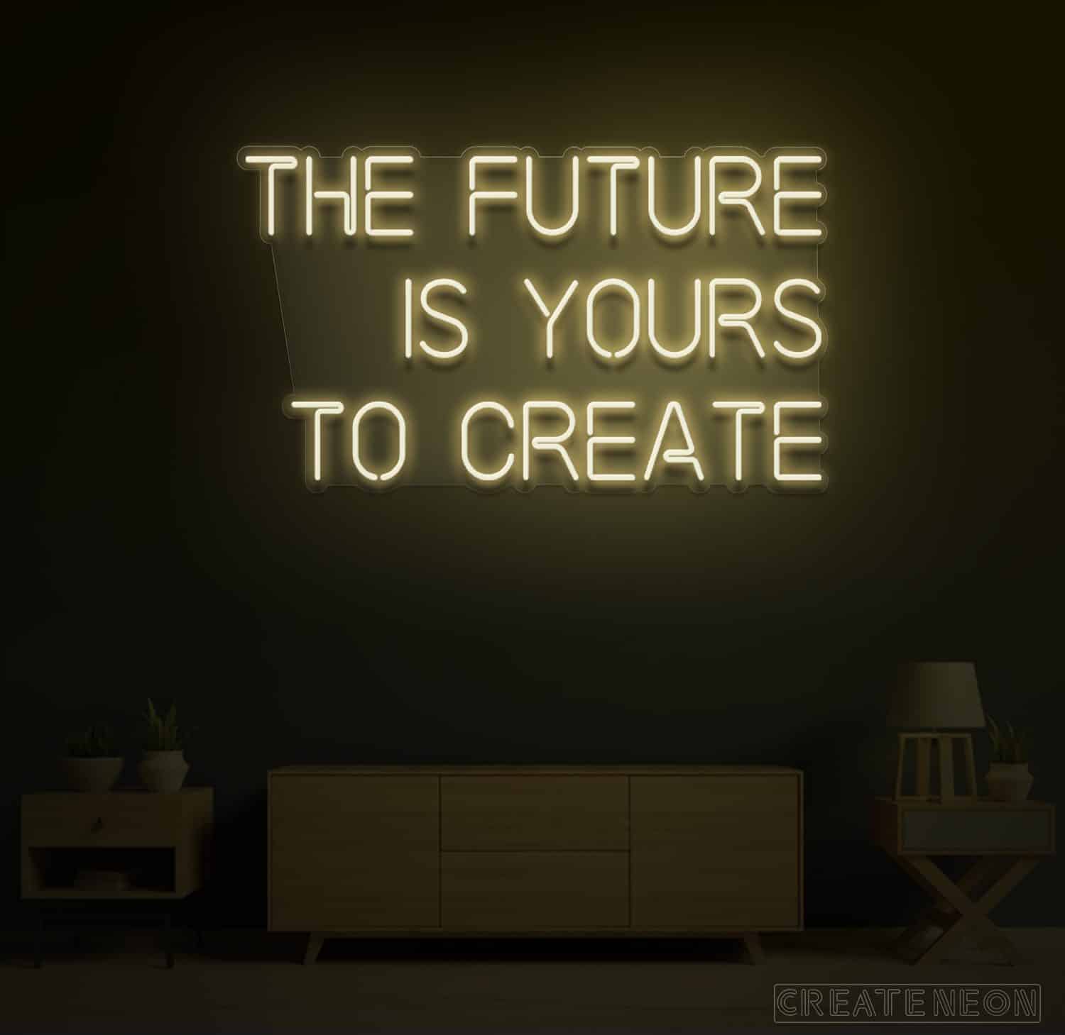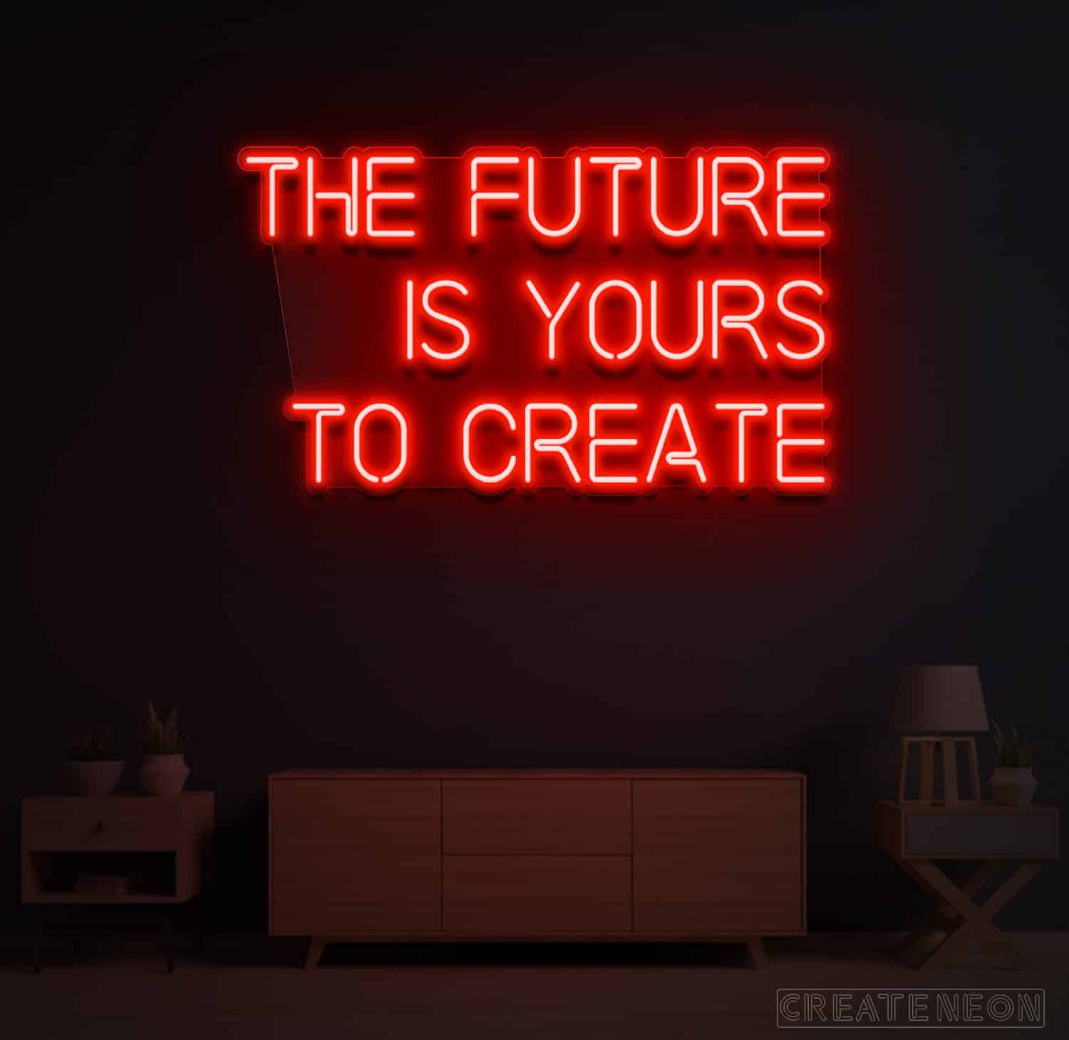 | Ambition is the power to progress or to prosper. Do you have a passion for changing the world? If so, then you must look at this, The Future is Yours Neon Sign. It is an immense neon sign for your wall that shouts | MOVE, OR NOTHING WILL HAPPEN. Fortune will be smiling on you since this "The Future is Yours to Create" neon sign is exactly what you need to remind yourself to go on with your day-by-day hustle. |