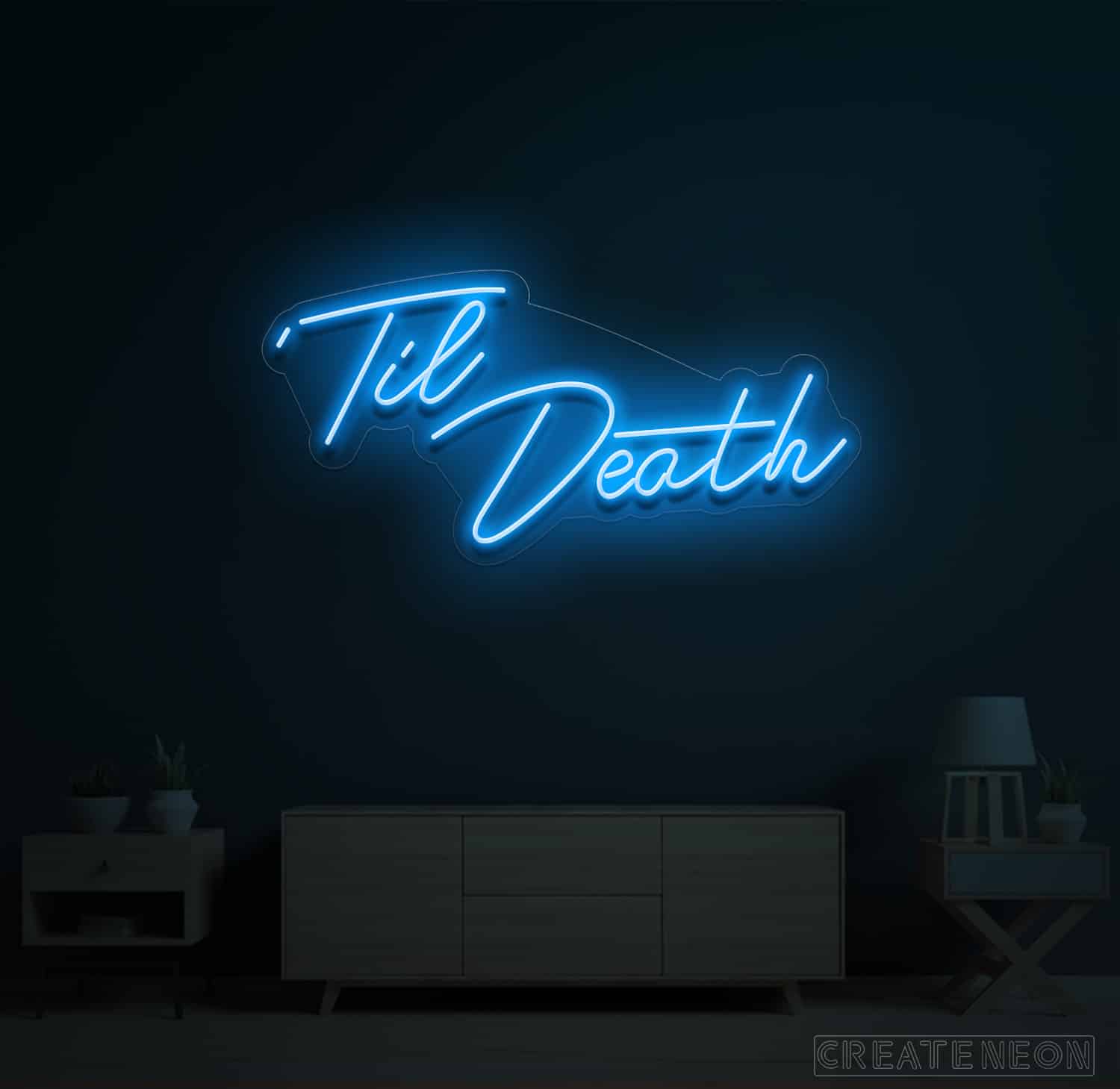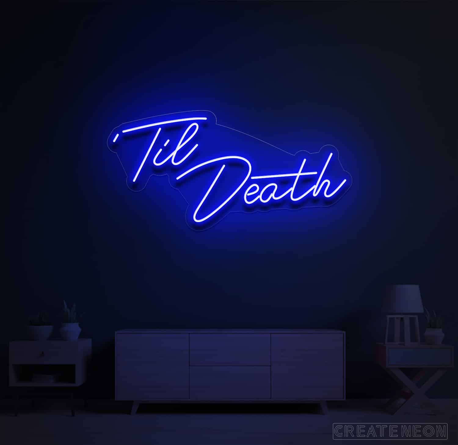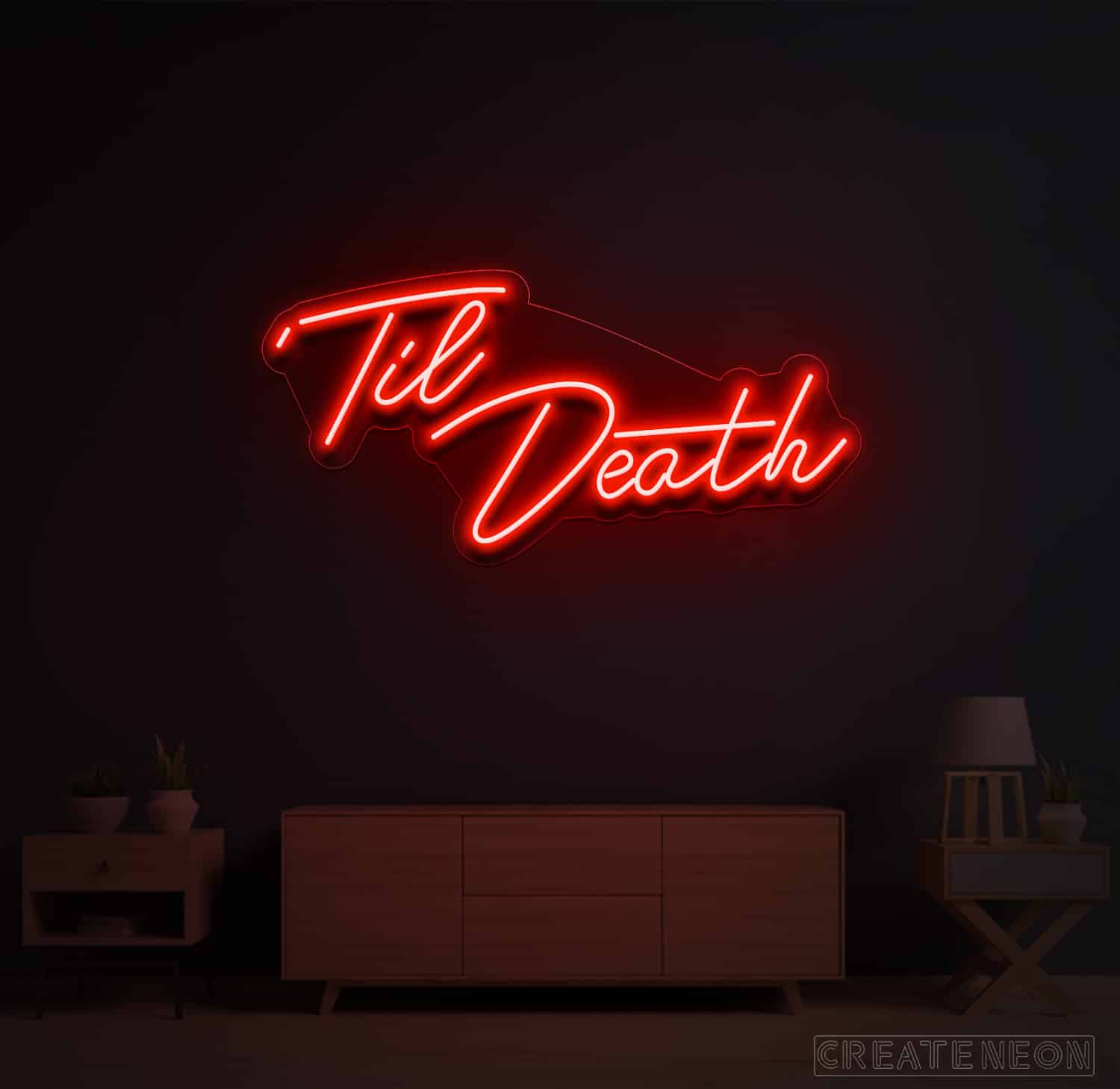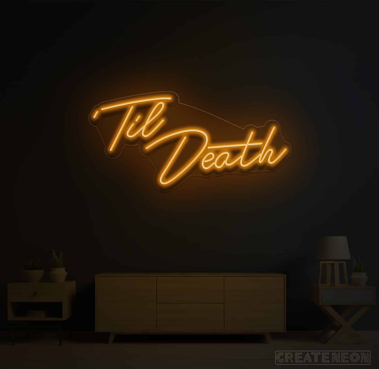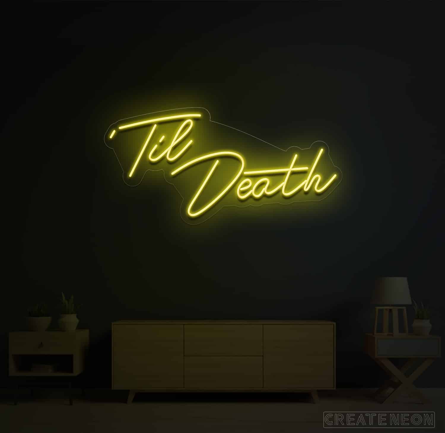 Till death neon sign is designed based on the series of love; a story dedicated to the newlywed couple living next door to the couple together for 25 years. Hence, the story revolves around feelings and love and that is the most important part of everyone's love life. Do not miss the chance to decorate your place with a sign of love on your big day.